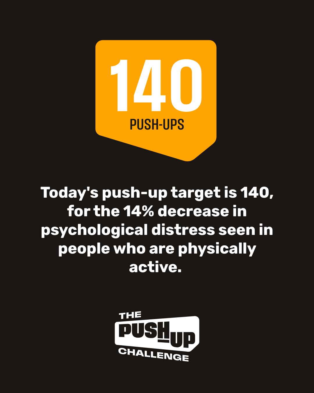 Today's push-up target is 140, because moving your body can increase your wellbeing by 14%.