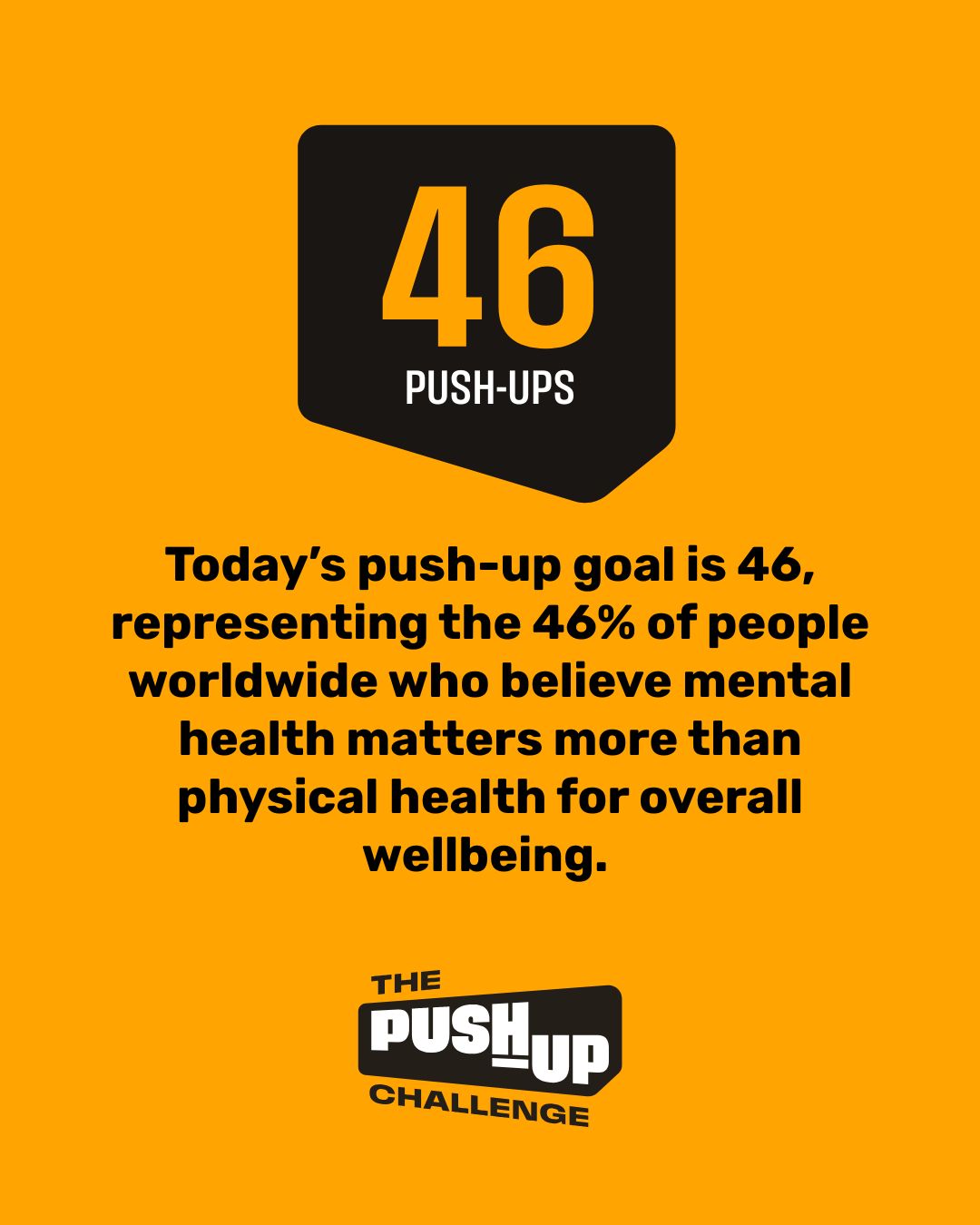 Today’s push-up goal is 46, representing the 46% of people worldwide who believe mental health matters more than physical health for overall wellbeing.