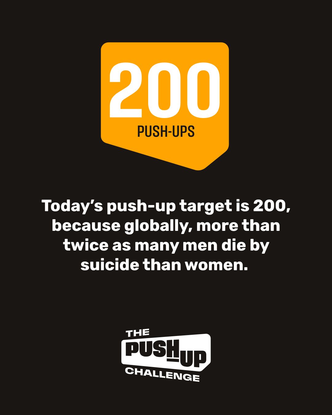 Today’s push-up target is 200, because globally, more than twice as many men die by suicide than women.
