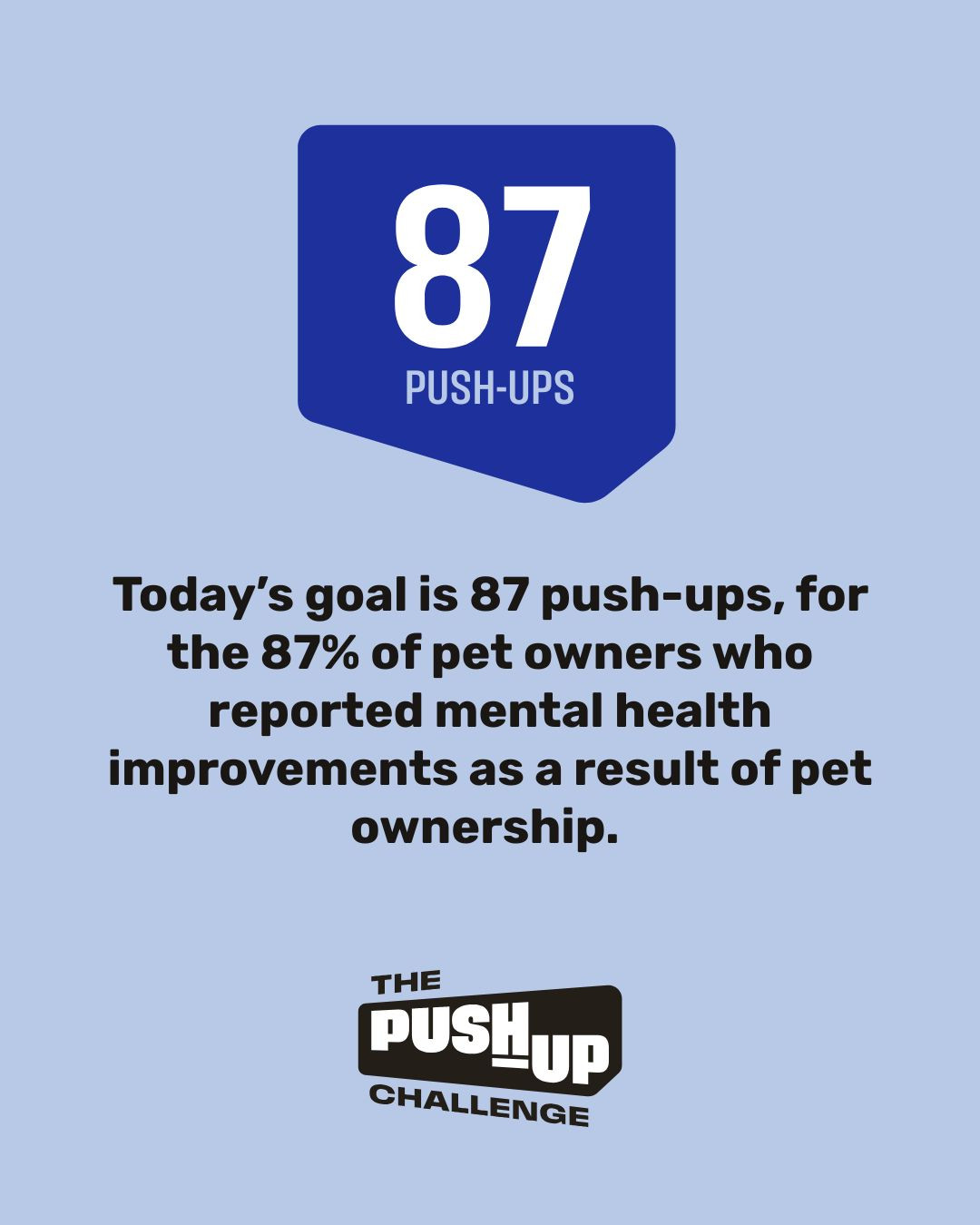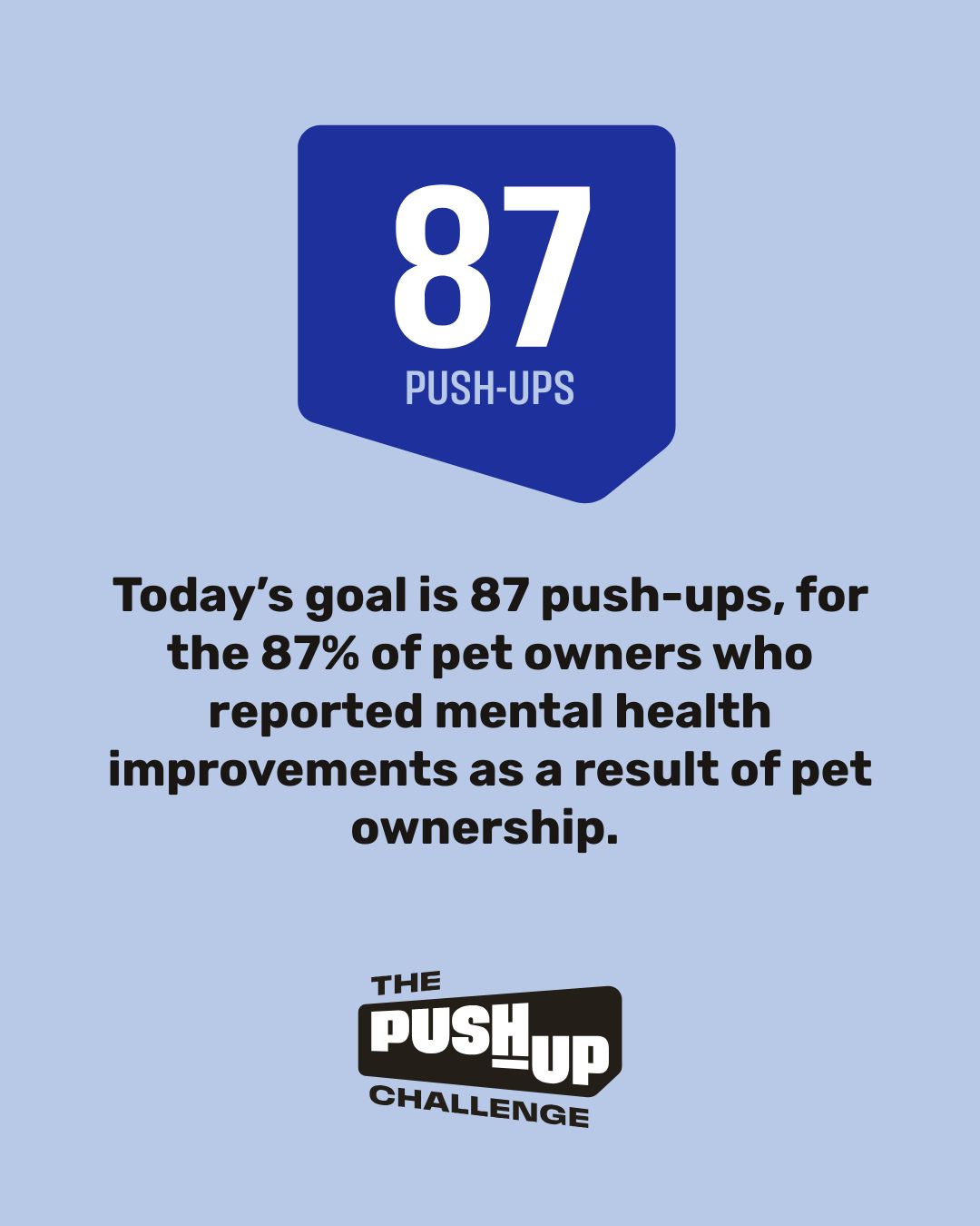 Today’s goal is 87 push-ups, for the 87% of pet owners who reported mental health improvements as a result of pet ownership.
