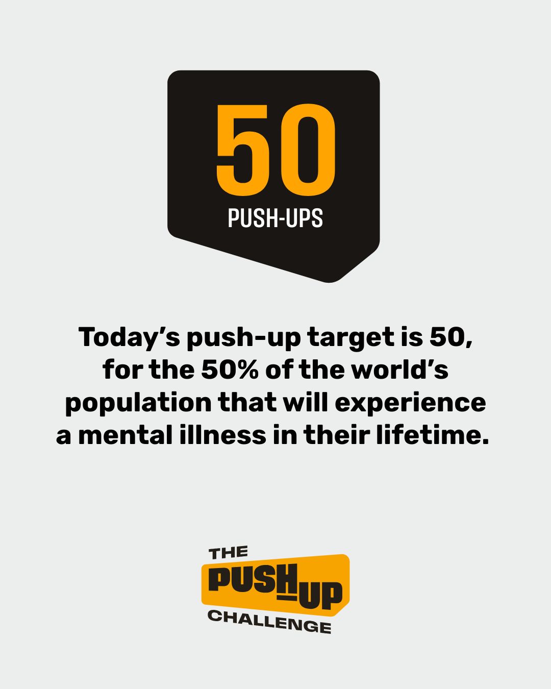 Today’s push-up target is 50, for the 50% of the world’s population that will experience a mental illness in their lifetime.