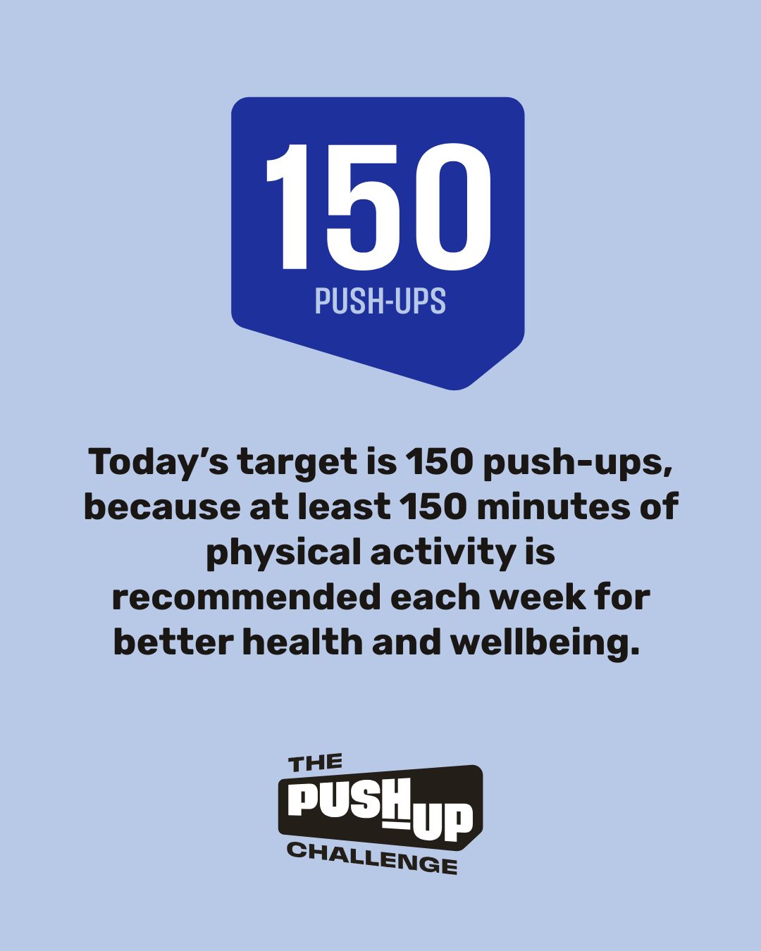 Today’s target is 150 push-ups, because at least 150 minutes of physical activity is recommended each week for better health and wellbeing.