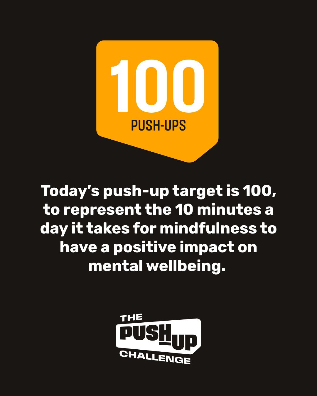Today’s push-up target is 100, to represent the 10 minutes a day it takes for mindfulness to have a positive impact on mental wellbeing.