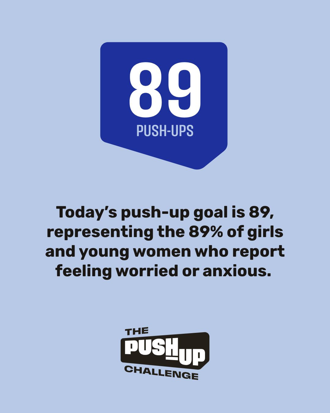 Today’s push-up goal is 89, representing the 89% of girls and young women who report feeling worried or anxious.