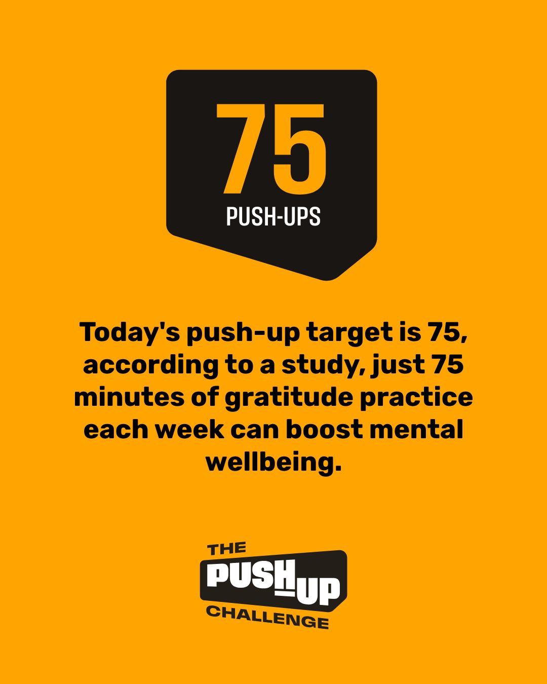 Today's push-up target is 75, according to a study, just 75 minutes of gratitude practice each week can boost mental wellbeing.