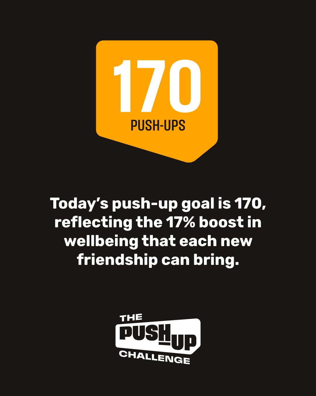 Today’s push-up goal is 170, reflecting the 17% boost in wellbeing that each new friendship can bring.