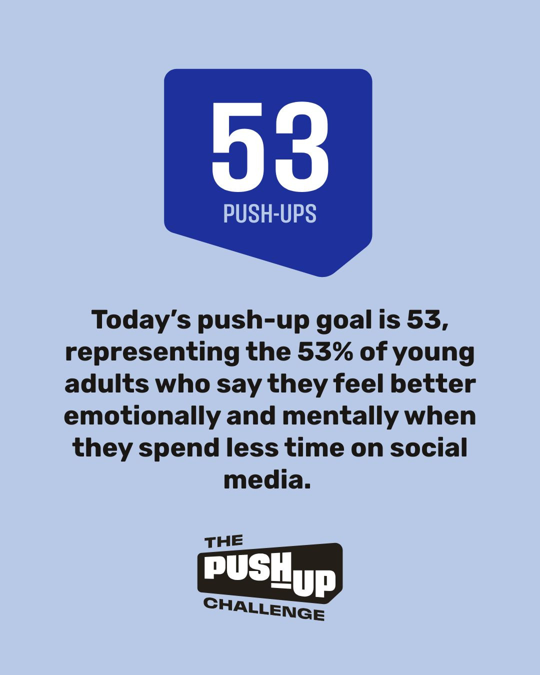 Today’s push-up goal is 53, representing the 53% of young adults who say they feel better emotionally and mentally when they spend less time on social media.