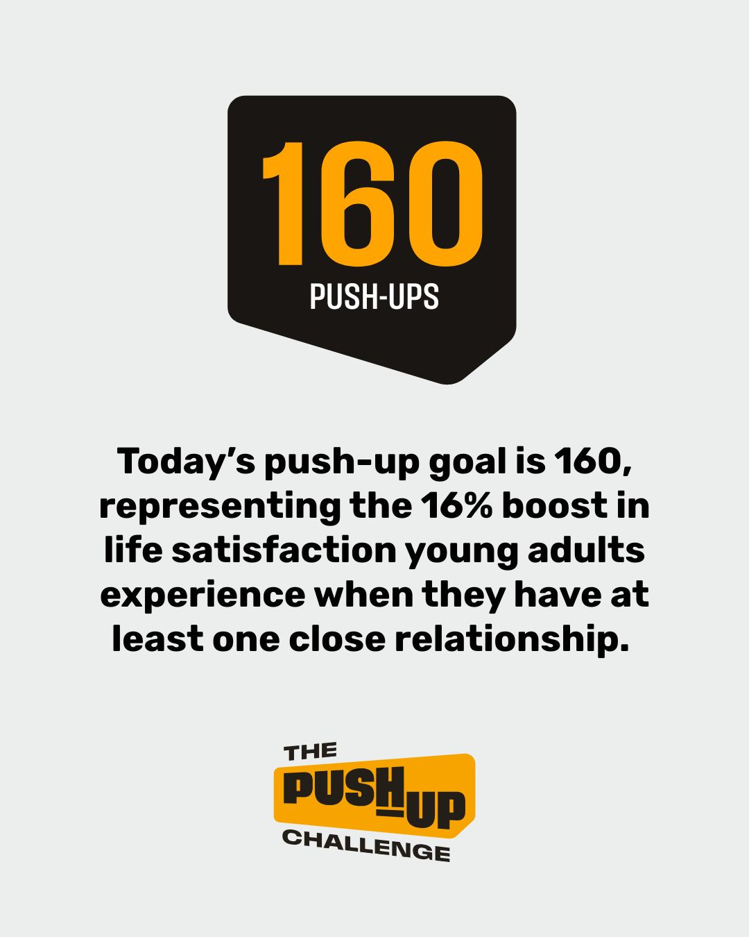 Today’s push-up goal is 160, representing the 16% boost in life satisfaction young adults experience when they have at least one close relationship.