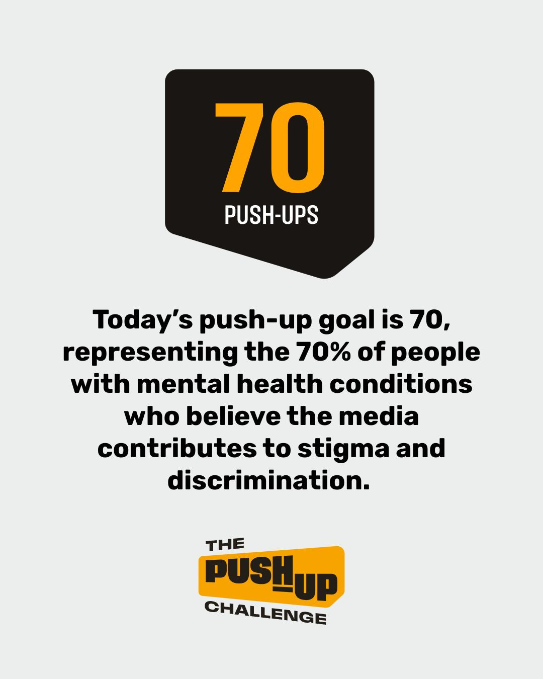 Today’s push-up goal is 70, representing the 70% of people with mental health conditions who believe the media contributes to stigma and discrimination.