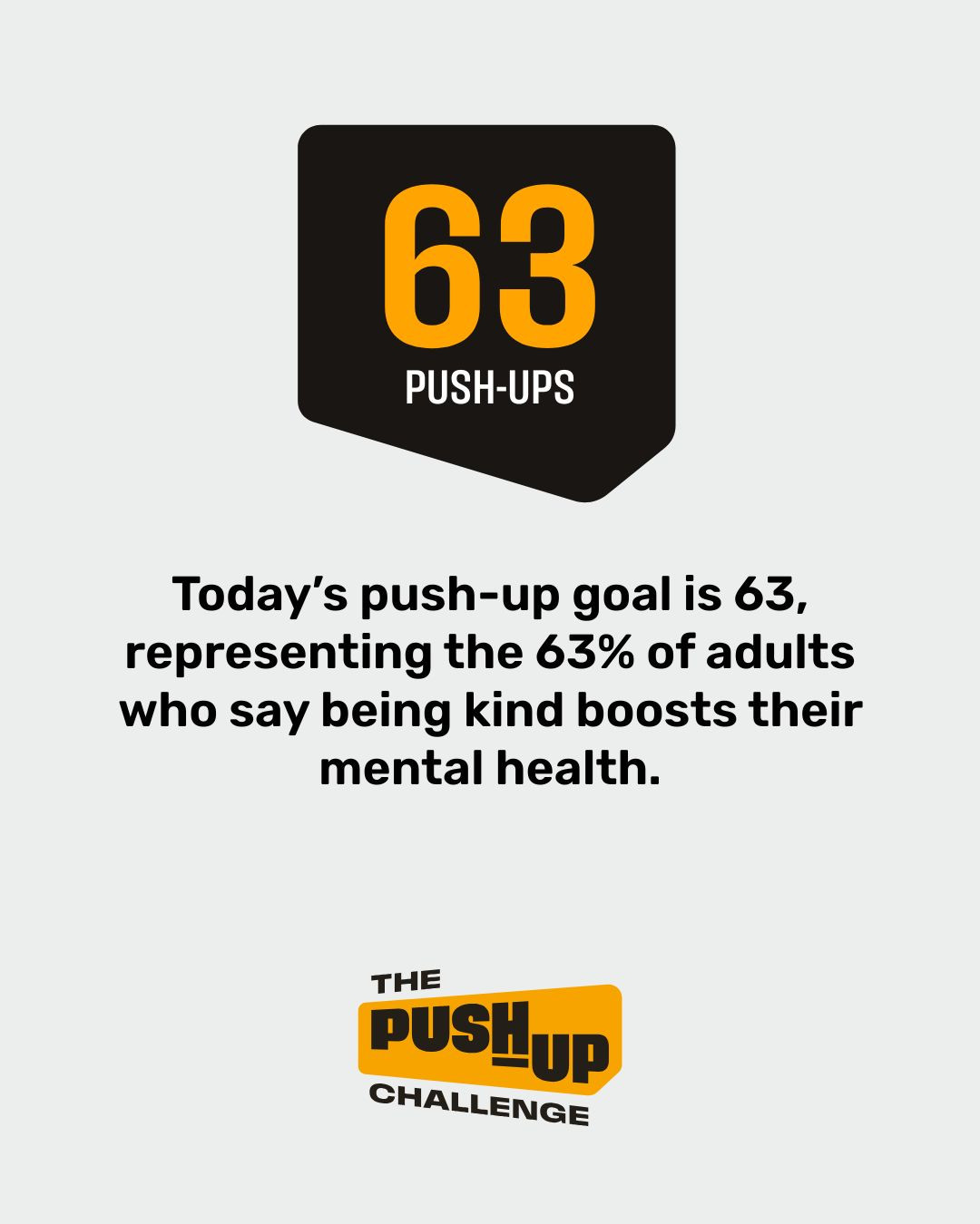 Today’s push-up goal is 63, representing the 63% of adults who say being kind boosts their mental health.